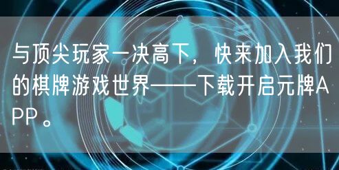 在这个充满竞技激情的棋牌世界,每一位玩家都渴望与顶尖高手一决高下。现在,这个机会就在你眼前——下载元牌APP,开启你的棋牌之旅!